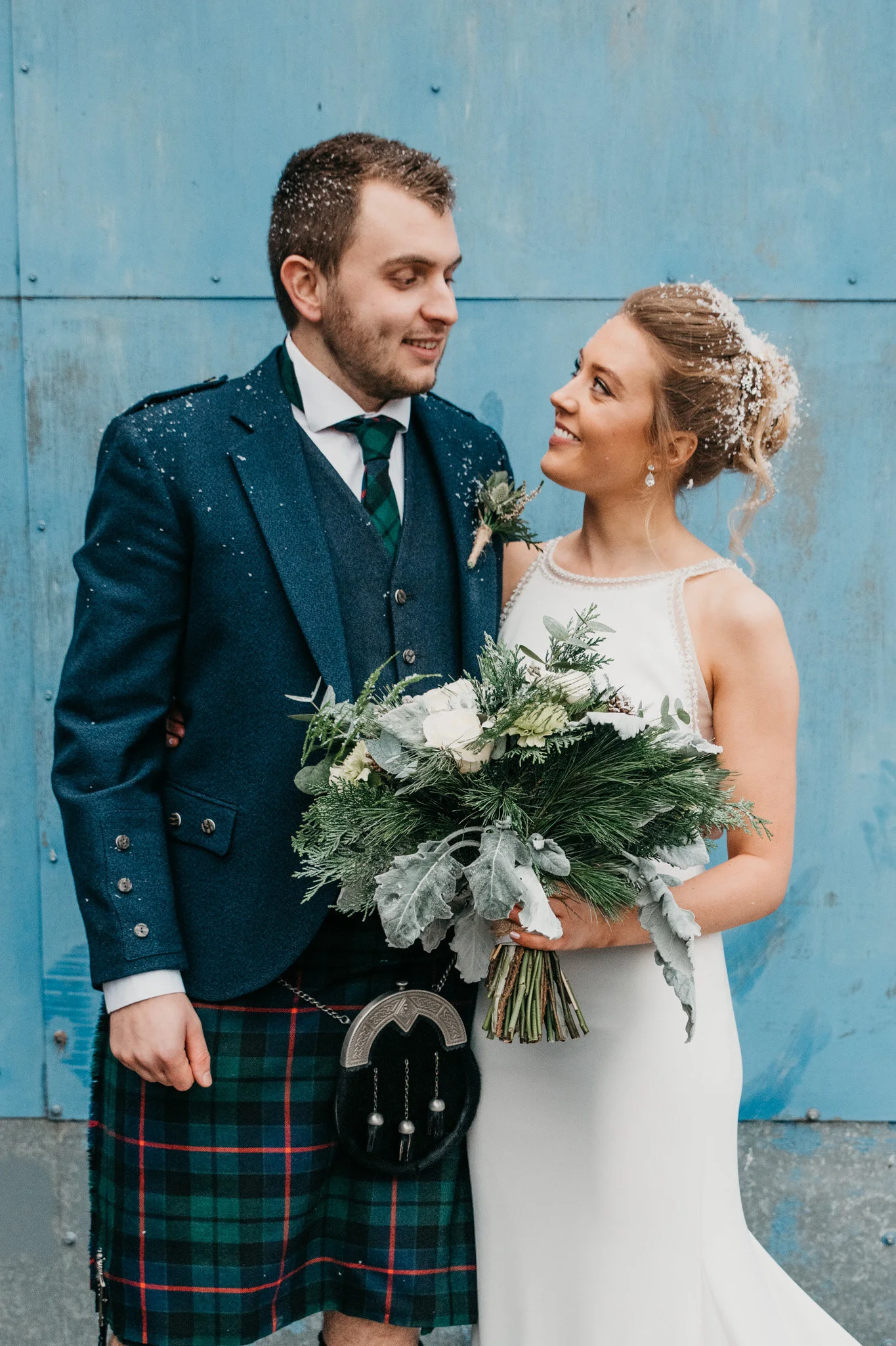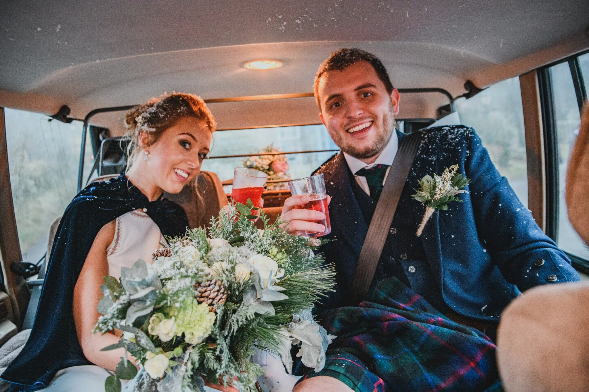 Ellis & DavidEllis and David had a beautiful barn wedding at Bachilton Barn, Creiff. That is confetti they are covered with, although a snow forecast had the couple slightly worried before the big day!